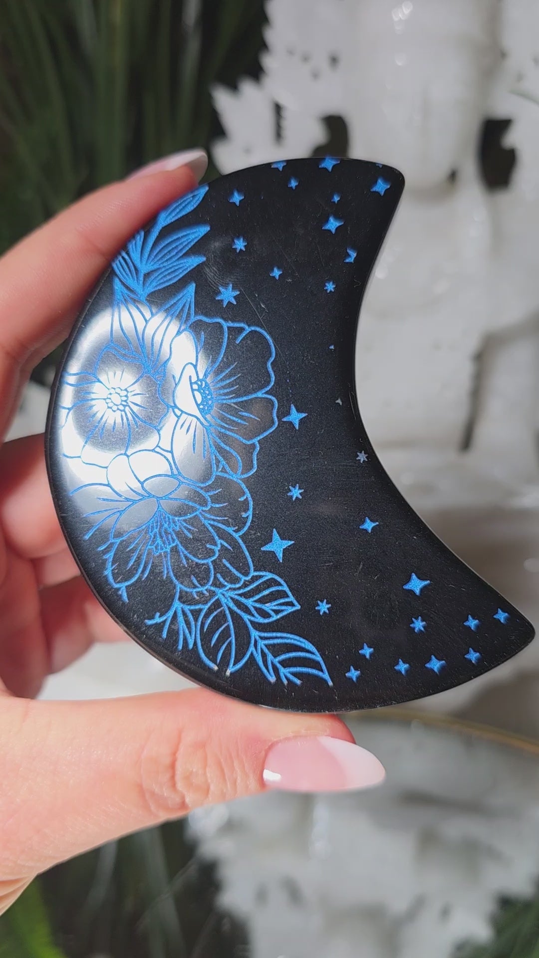 Obsidian Mond mit Gravur