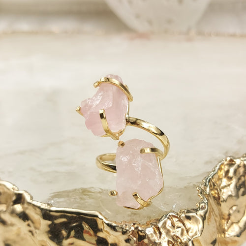 Zwillingsring Rosenquarz Gold Groß