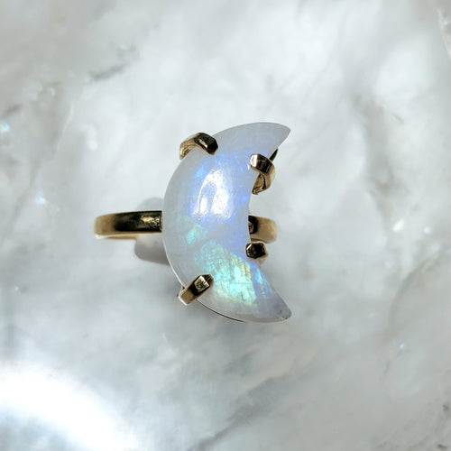 A-Qualität Ring Regenbogen Mondstein Mond Gold (Ringgr. 47-50)