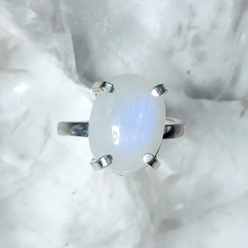A-Qualität Ring Regenbogen Mondstein Oval Silber (Ringgr. 49-53)
